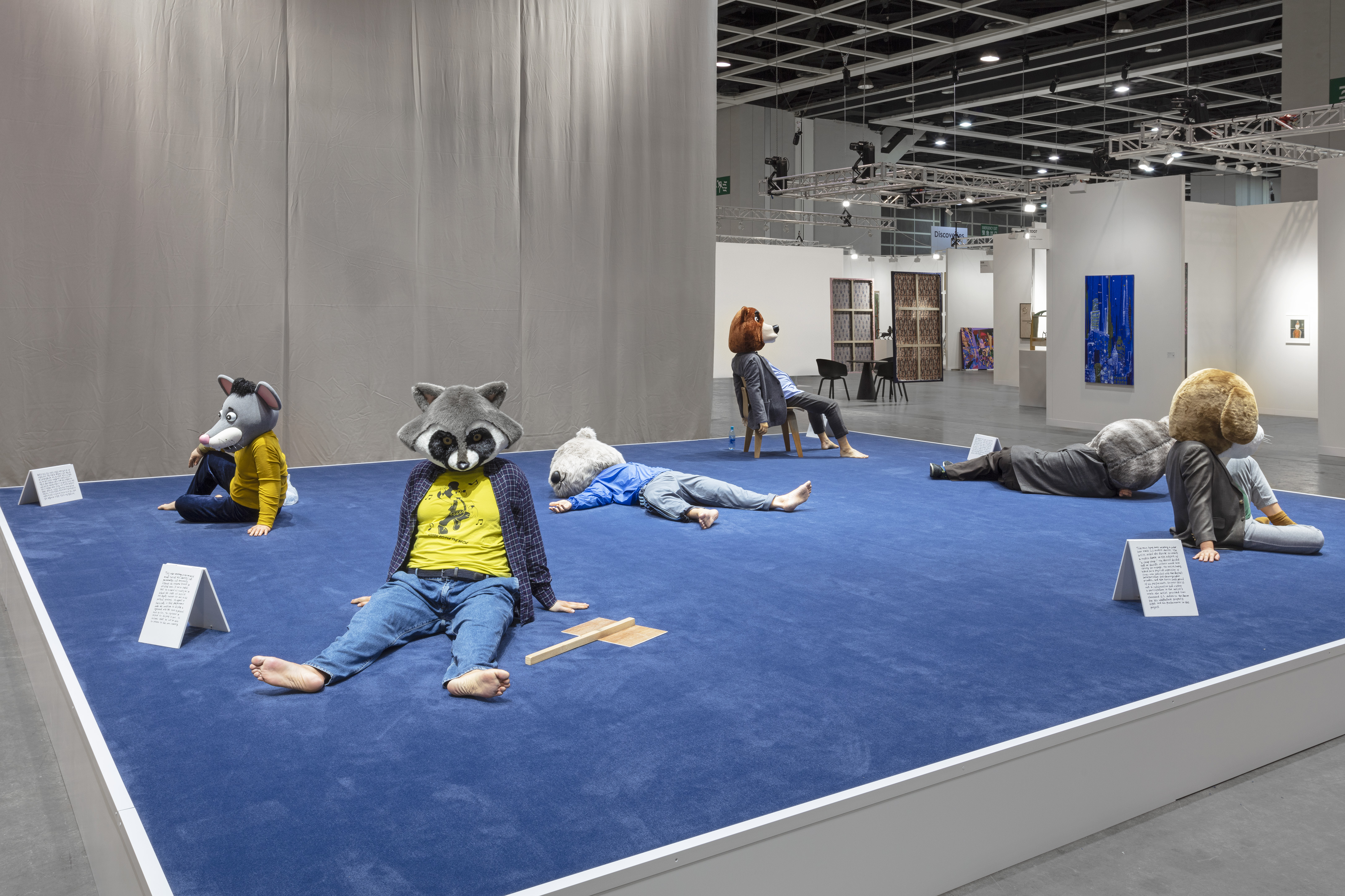 Solitude of Silences features masked mannequin sculptures, each of which takes on a certain role described on the signboard. While viewers contemplate on the authenticity of the texts, the sculptures gain their status as laborers. Visualizing a systemic relationship between the artist, participants, and audience, this project reproduces ordinary working class citizens that hold a majority of the population in today’s cities. Although their ideal was enormous, the people contradict themselves and are dissonant to the contemporary cognitive system due to their modern education. By replacing the work with fake people, Gim escapes from the hierarchical fallacy of inviting real people to make a work and casts fundamental questions over the authority an artist and artwork holds over performers and objects, as well as judgement over the value of labor.
