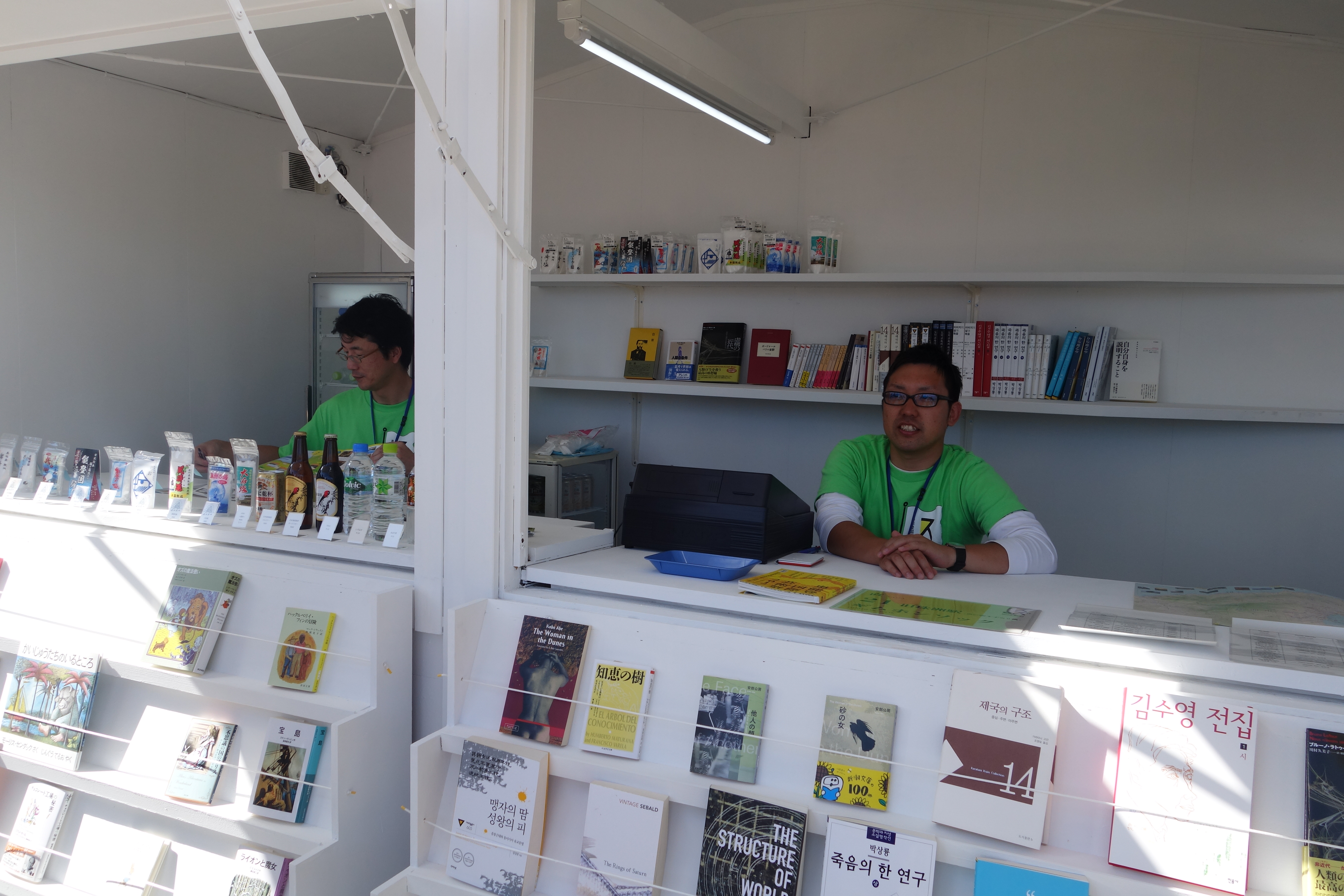 items at Kiosk: literature, philosophy and children's books, three kinds of beer, drinking water(volvic and Japanese local brand, 500ml ea.), nine kinds of salt