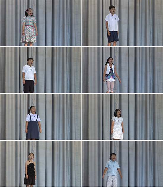 The children who appear on the screen are singing songs from various countries. Because the foreign lyrics have been translated into Korean, the children do not have difficulty in learning the tunes. Most of these songs are from the 70s and 80s, and were featured in Korean middle school and high school textbooks. Only songs written by musicians who received the official approval of the then Ministry of Education were included. By introducing an advanced Western culture into the curriculum, the ministry aimed to cultivate an appreciation for the beauty of foreign cultures in Korean youths, and to help them adopt cosmopolitan attitudes and tastes through the creation of a cultural affinity. The songs presented here are Aloha Oe, Heidenroeslein, La Paloma, Swing Low, Sweet Chariot, Greensleeves, Der Tannenbaum, Funiculi-Funicula, and Oh! Susanna. My father suggested that I memorize at least one of the songs listed above by heart and learn to sing it skillfully, for he said that being able to sing a song from a foreign country would prove essential in solidifying the friendships I formed with Westerners. Although I never managed to actually carry out my father’s advice, I have often regretted my passive approach to such things. Even now, I feel that being able to sing at least one song in a foreign language—whether it’s an American or German song---would be a good thing. I love music even though I don’t like to sing. I wish this love to be communicated to others.